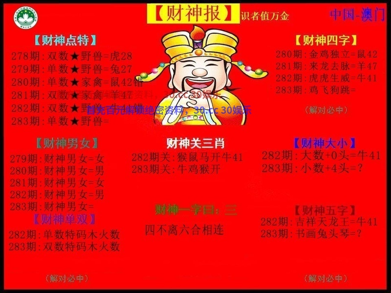 280期 | 1尾-2尾-5尾 | 1尾-3尾-4尾 | 2尾-4尾-7尾 |