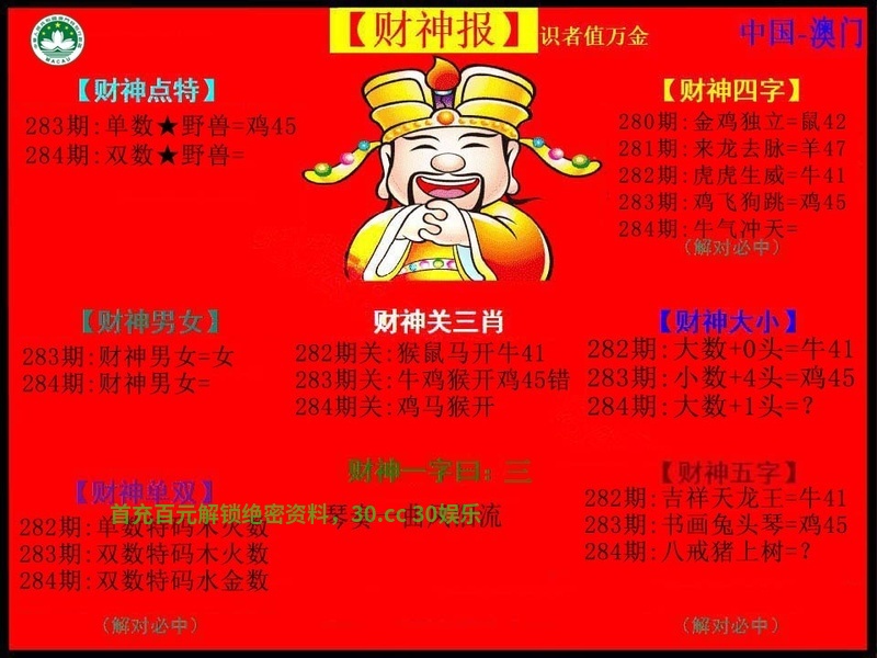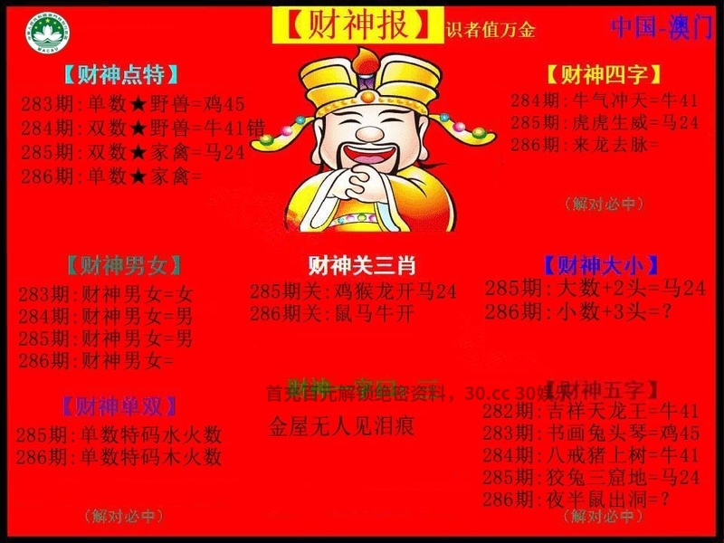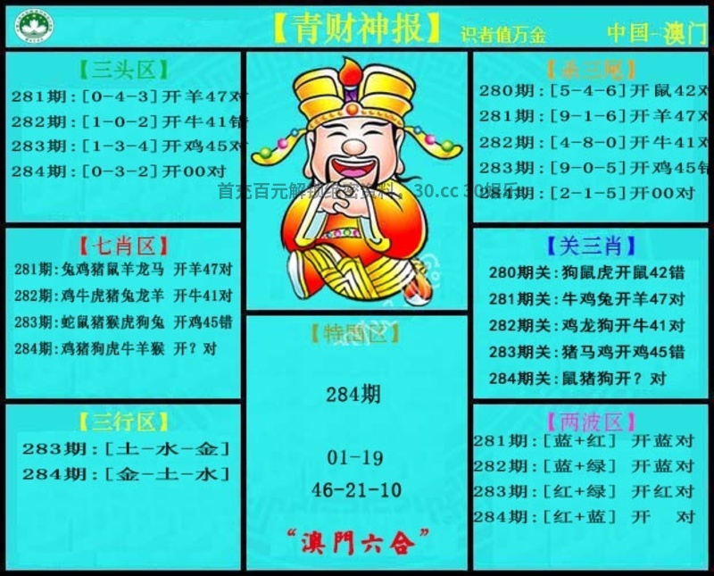 284期 | 0尾-3尾-5尾 | 1尾-2尾-8尾 | 2尾-5尾-6尾 |
