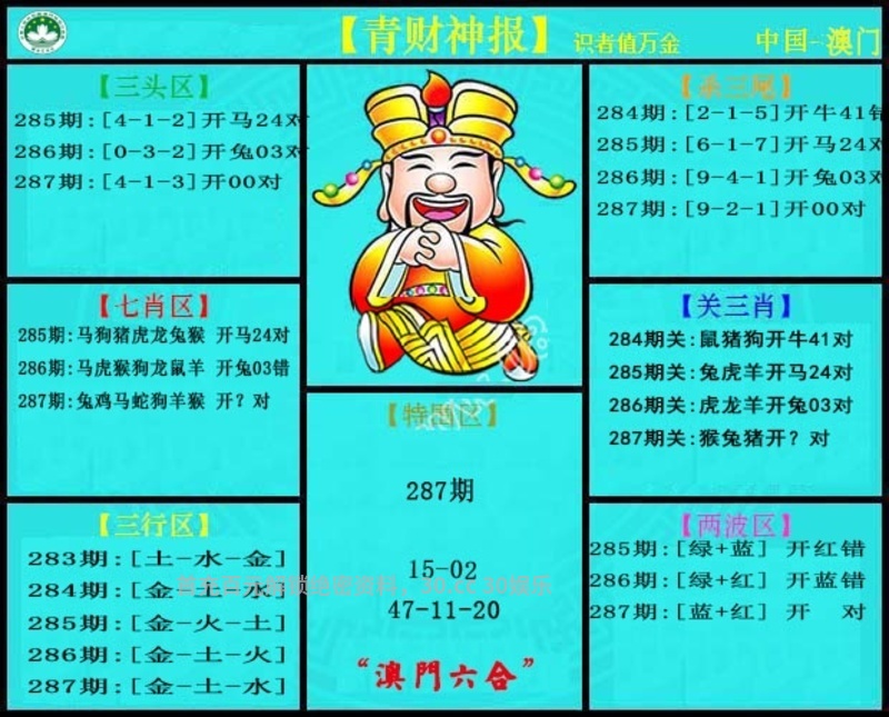 287期 | 0尾-1尾-4尾 | 2尾-5尾-7尾 | 1尾-2尾-5尾 |